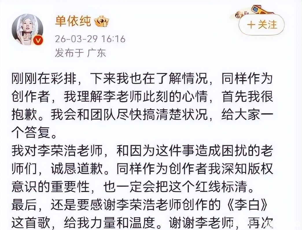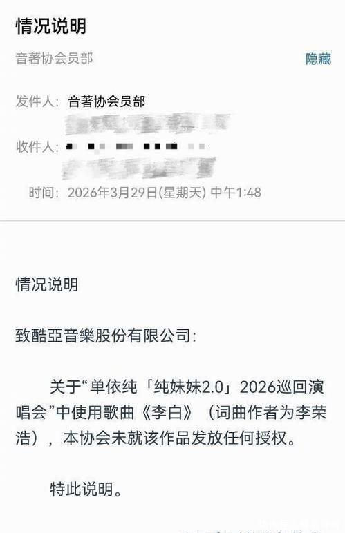 这次争议的导火索,直指后生歌手单依纯在深圳市举办的一场付费演唱会。据多方信源证实,其团队曾厚爱向李荣浩方面提议演唱歌曲《李白》的授权恳求,但遭到明确推辞。