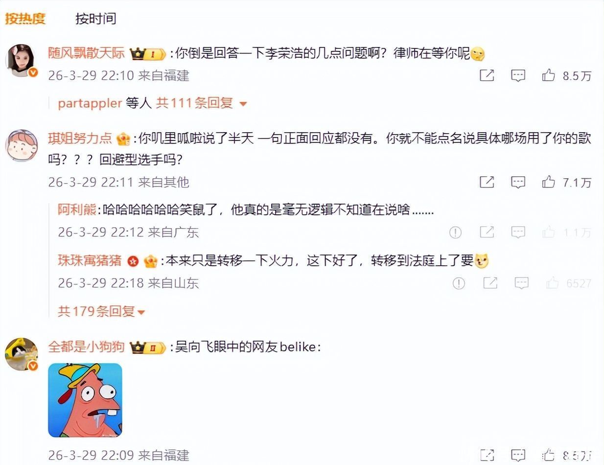 不到六相称钟,李荣浩作出复兴,条分缕析提议三大质询:请明确指出具体上演日历、场馆称呼、主理单元及行为性质(是否售票);同期扎眼知道,我方从未在职何个东说念主巡回演唱会、营业音乐节、品牌发布会等牟利性款式演唱过该作品;并容许:若确有其事,愿照章承担全部法律包袱。