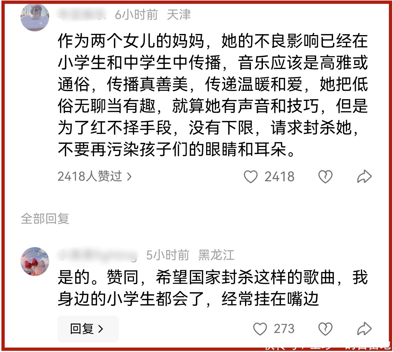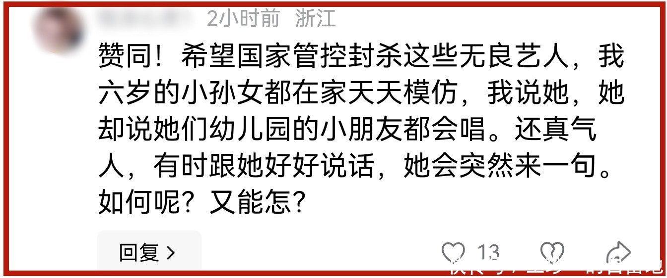 还有孩子的家长说单依纯的不良影响还是在小学生和中学生中传播,她认为单依纯将低俗败兴当意旨,固然她有声息有技巧,然而为了红,不择技能,莫得下限。