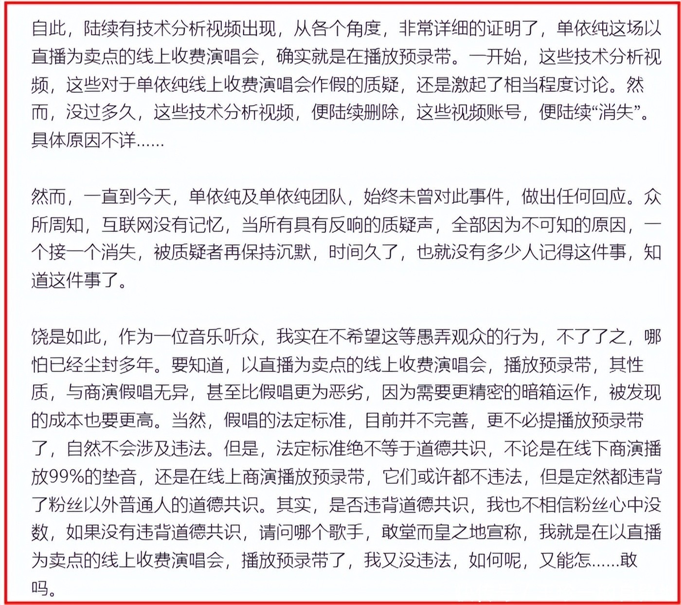 那时这起事件也激励了保重,但单依纯莫得作念出回复,反而那时对这场线上演唱会进行期间分析的视频纷纷“消散”了。