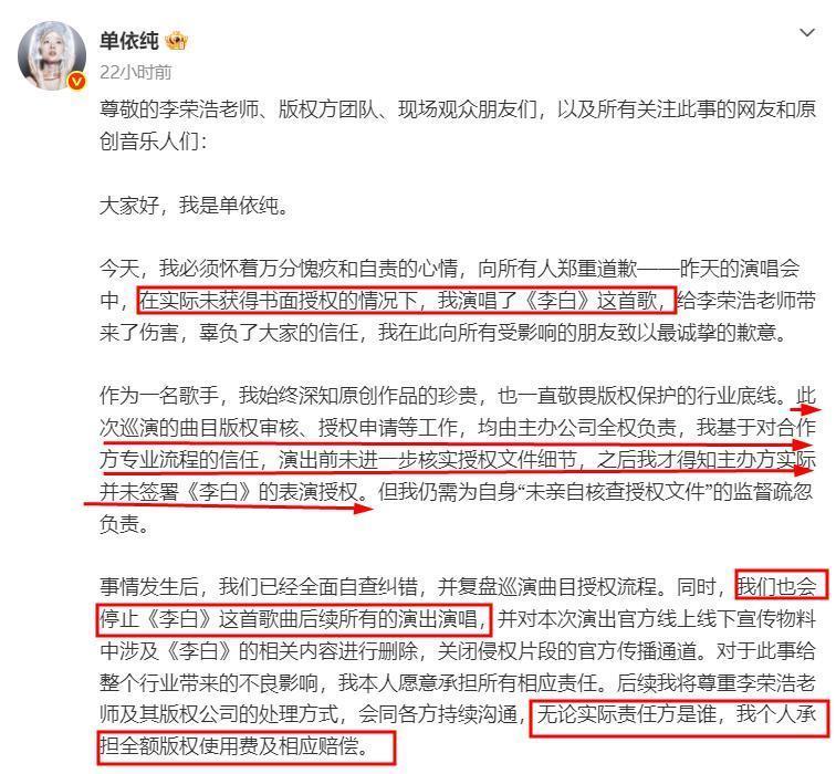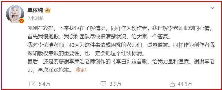 那么,关于单依纯的说念歉、补偿,李荣浩是什么气派呢?