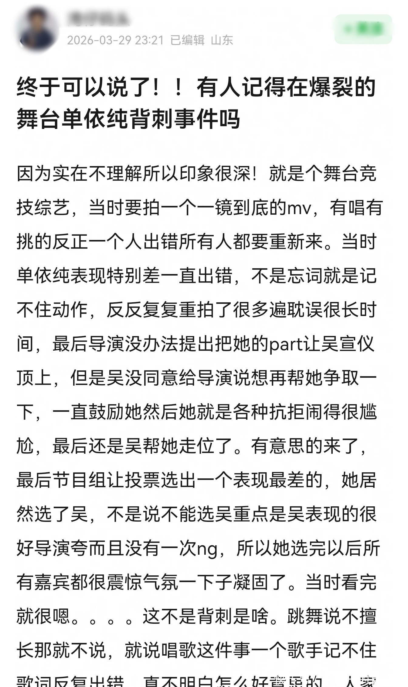 他但愿单依纯好好回复此事,不要假装不知说念,说齐是公司干的。也不要在3月29日晚的演唱会上哭哭啼啼,博取爱怜。