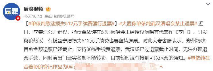 这次事件发生后,有的购票粉丝容许亏损512元手续费也要坚执退票。