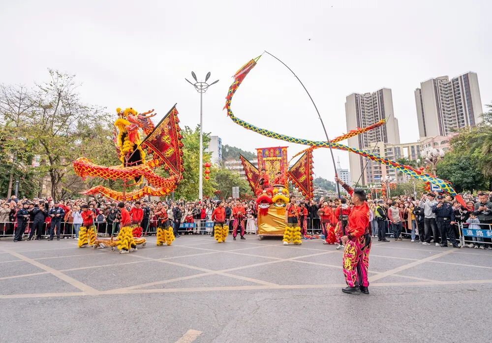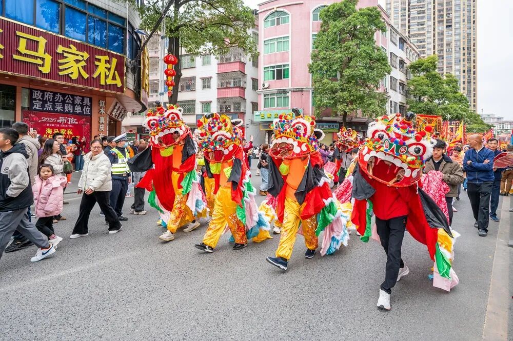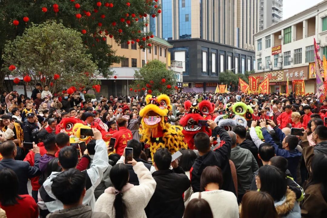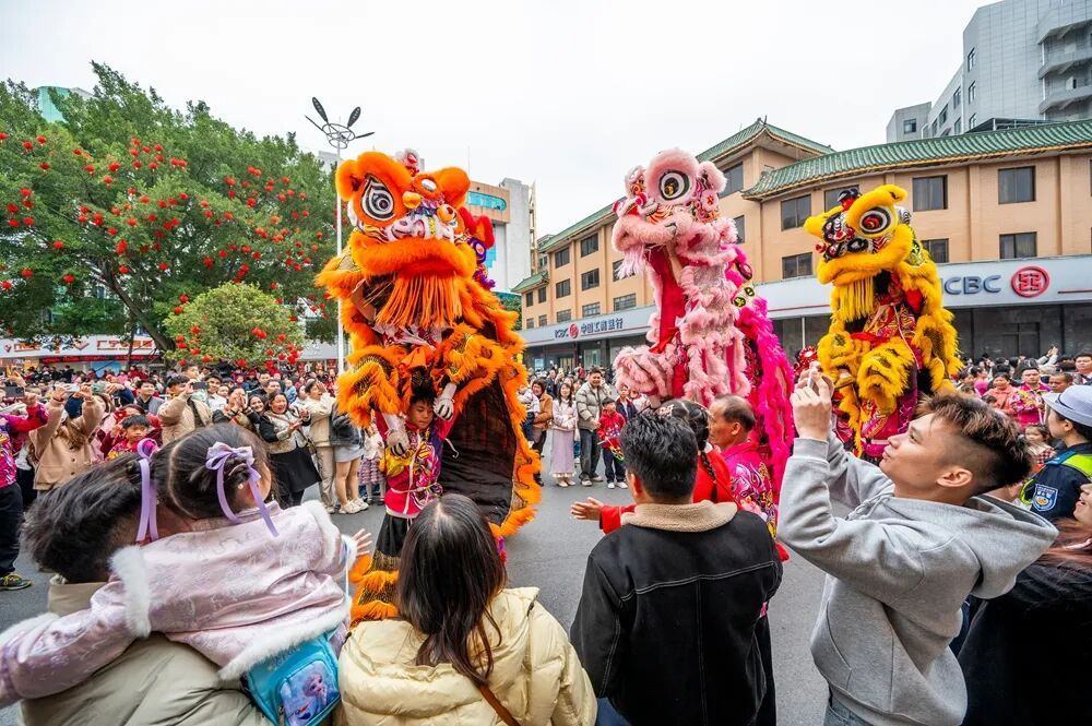 在县城市中心广场,吵杂超卓、东谈主头攒动,88支龙狮队伍,230多头龙狮以及1700多名队员皆聚于此、治装待发。跟着巡游开启,龙腾狮跃,一齐眩惑了5万名市民立足围不雅,民众一同千里浸在这雅瞻念氛围中,共庆马年新春,感受浓浓的年味。