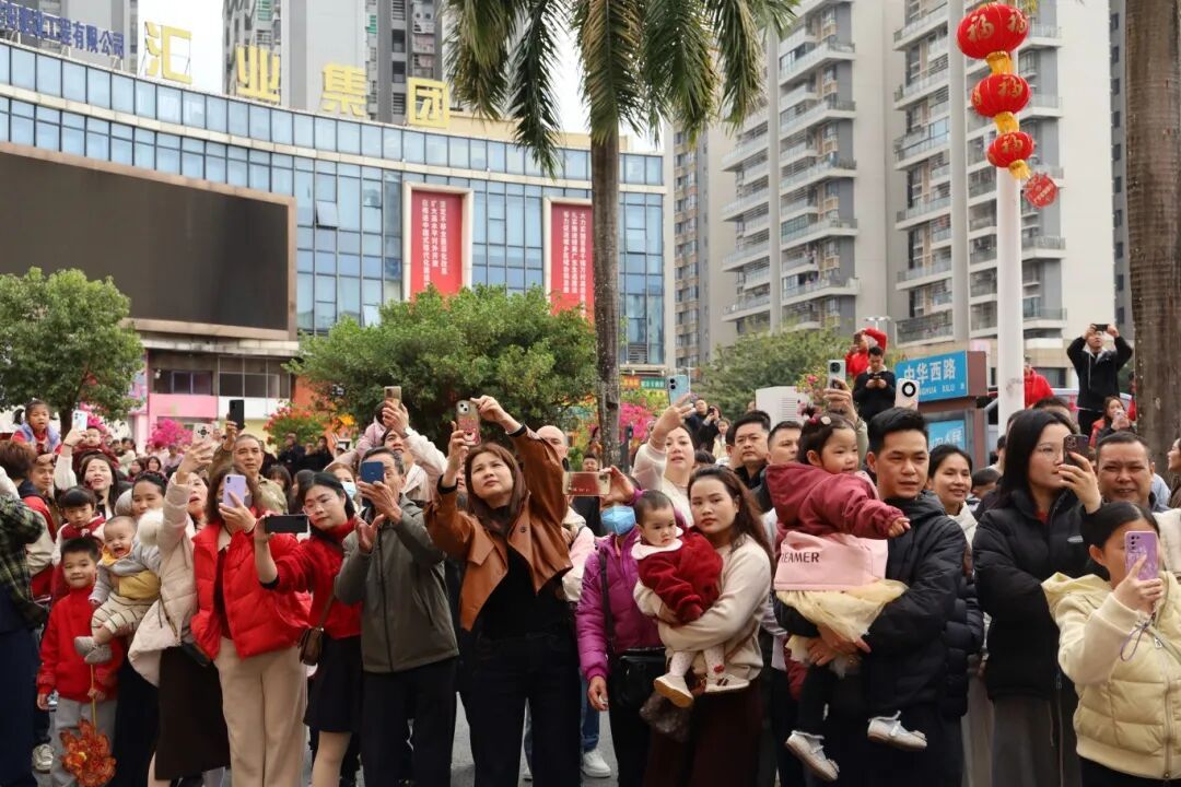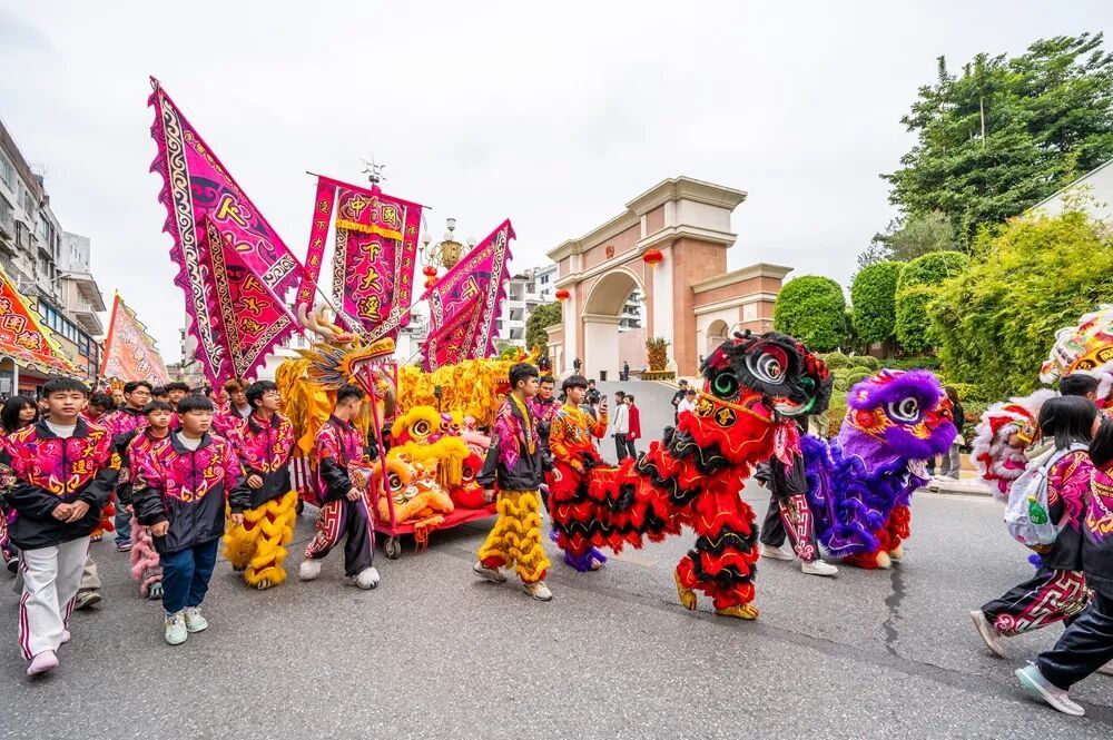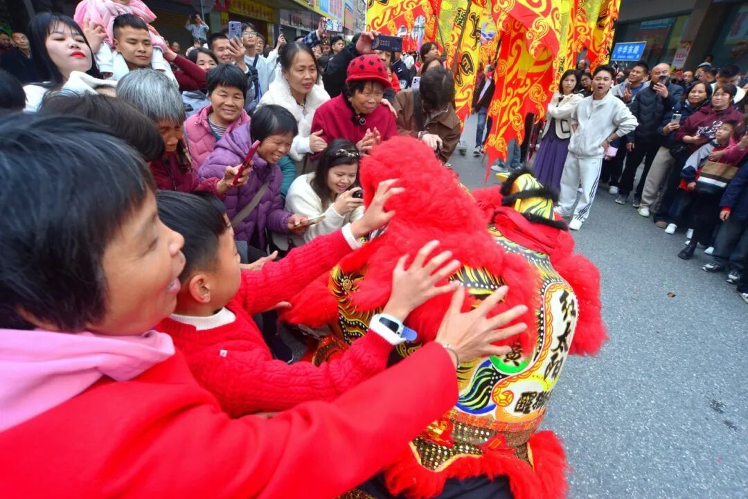 行至南坤城路口时,集体响锣饱读、起高狮形态将歧视推向热潮。匆忙哨声中,合座龙狮队同步擂饱读,数头龙狮抬头起高,身姿康健、威望磅礴。随后队员们通晓配合,动作精确利落、刚柔并济,带来精彩龙狮盛宴。市民纷繁拍照眷恋,孩子们欣喜着触摸龙狮头祝愿。