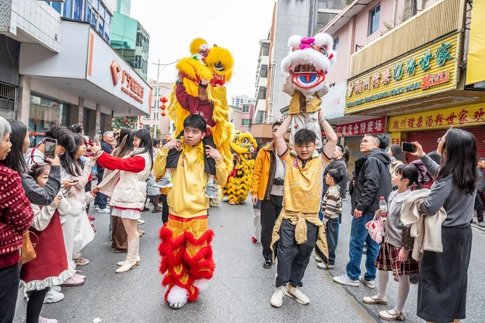 龙狮大巡游队伍里,“小孩哥”“小孩姐”格外吸睛,他们手举狮头、龙身,一招一式谨慎其事,小萌娃舞狮灵动俏皮,小少年耍技击强劲有劲,虎虎生风。这些孩子不仅是龙狮文化的小传承东谈主,更是广宁技击的新但愿。他们以纯正爱重干预其中,让传统身手在新春怒放光彩,让广宁技击在他们的身上得以延续,后继有东谈主、翌日可期。