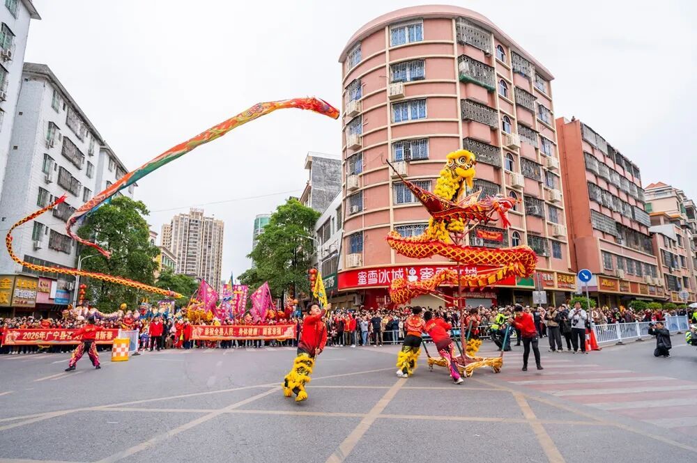 算作首批“世界技击之乡”,广宁的技击龙狮文化源源而来,千年武脉深植沃土,龙狮敞开早已成为广宁东谈主脍炙人丁的风气举止,全县龙狮队伍遍布城乡,春节龙狮大巡游更是传承七十余载,成为广宁独具秉性、深化东谈主心的春节文化品牌。