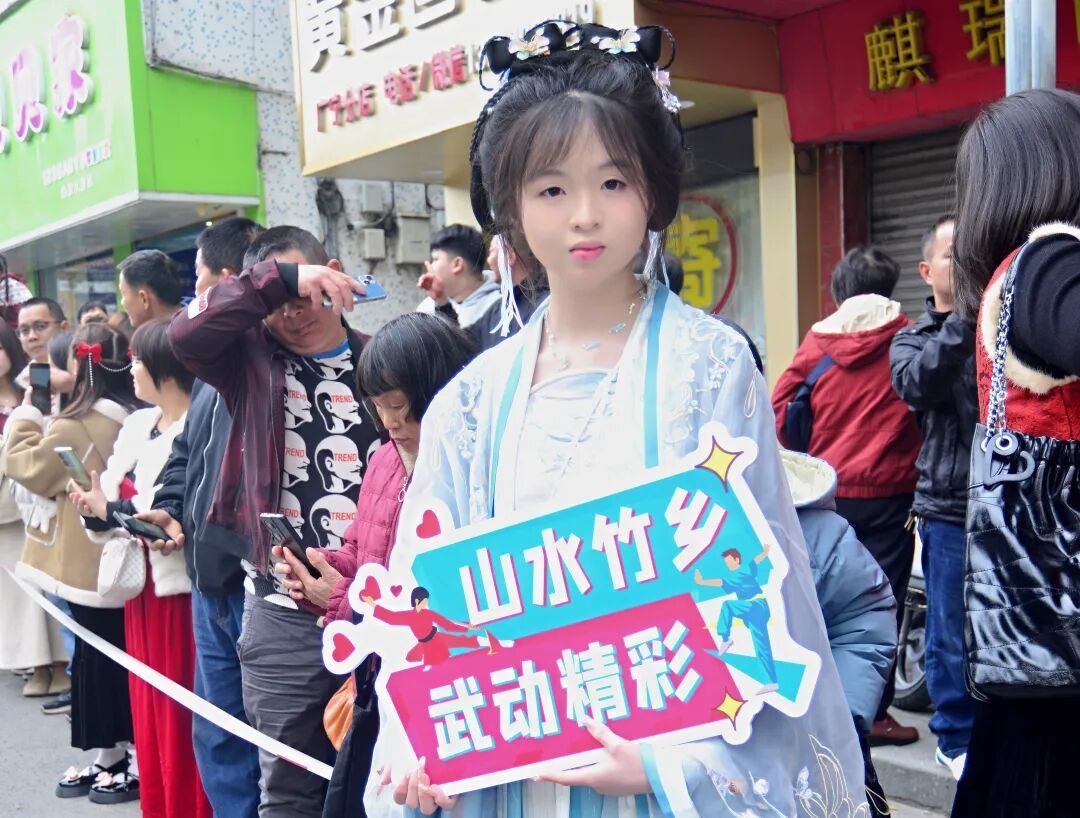在一齐欢笑前行途中,志愿者、汉服协会东谈主员、广场舞爱好者高举广宁秉性文化和“万马奔腾”马年祝福语手举牌,开云体育将竹乡的文化底蕴、发展风范融入巡游之中,让市民在赏龙狮的同期,感受广宁的独有魔力,为巡游增添了别样亮色。